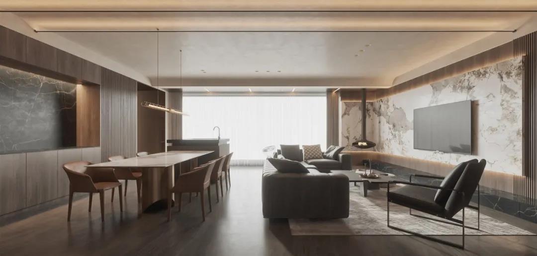 精神追求与物质审美的超越与融合,沉淀人文与物质的美好。 在本案中,设计师通过多元设计文化的融合和碰撞,赋予空间叙事的语境。抛开沿袭守旧的固定思维, 游走在东方与现代的创想之中,为都市经营阶层诠释他们理想生活的意境表达,营造出现代雅致的的人居范本。